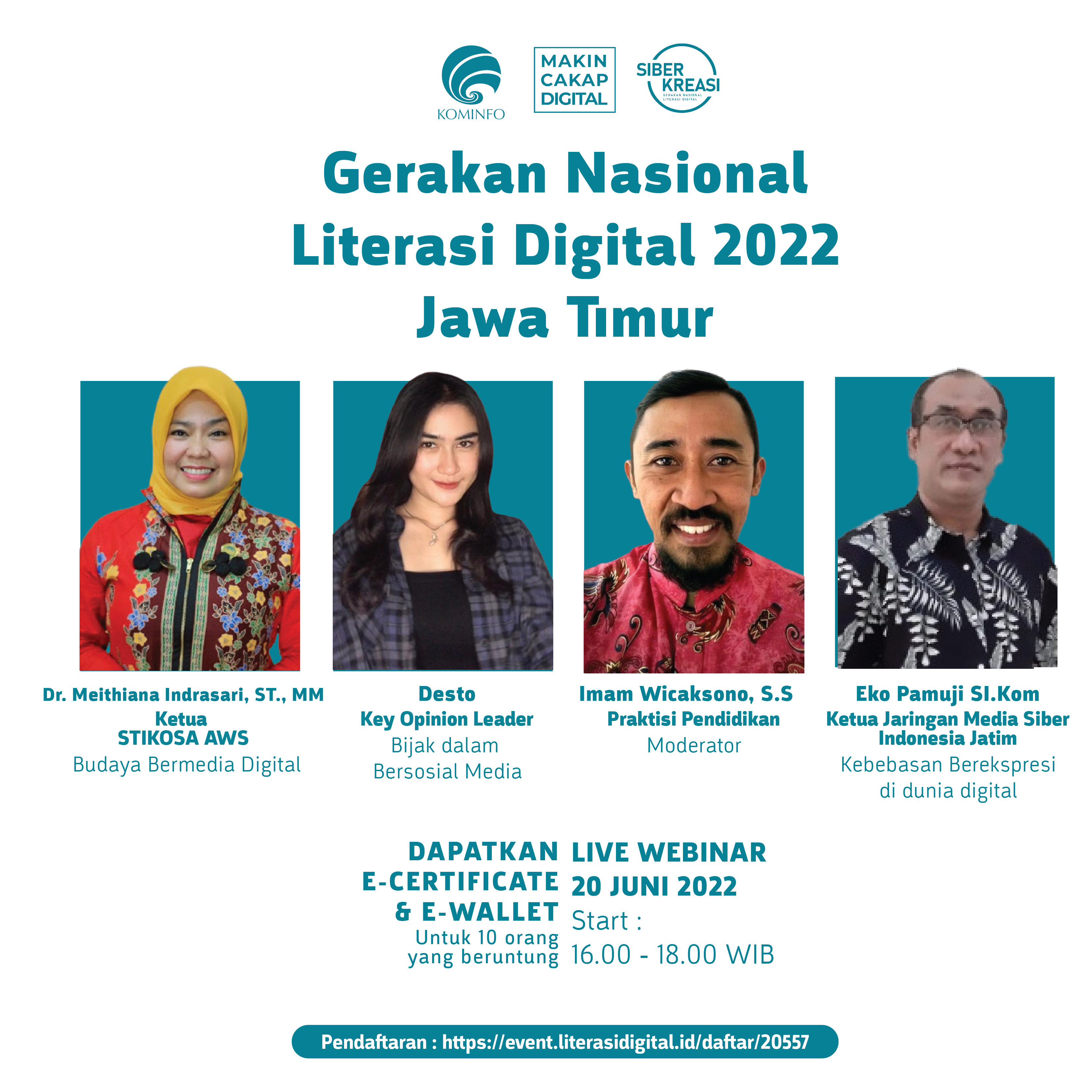 Berlaku sebagai narasumber pada acara tersebut adalah Drs. Eko Pamuji, M.I.KOM yang memaparkan beberapa program Literasi Digital Kemkominfo dengan melibatkan berbagai elemen masyarakat seperti guru dan pelajar, mulai dari level usia Sekolah Dasar (SD) kelas 5 hingga SMA di Provinsi Jawa Timur.